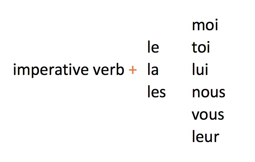 Here object pronouns come directly before the verb (or in a compound tense , the auxiliary verb avoir or être). In cases where there are two pronouns the order is as follows: